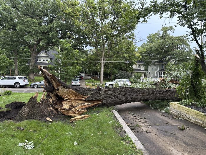 The Chicago Fire Department said on the social media site X that there was only one serious injury in the nation’s third-largest city, a person who was hurt when a tree fell on a car.