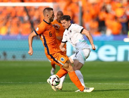 BERLIN (Reuters) -Austria’s aggressive and hard running approach propelled them into the last-16 of the European Championship on Tuesday as a thrilling 3-2 victory over the Netherlands saw them not only progress but also snatch first place in Group D.