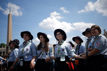 But instead of world leaders like U.S. President Donald Trump, who attended the funeral, the vast square and surrounding streets were filled with what Italian police estimated were 200,000 mainly young people, many wearing scouting uniforms or colourful T-shirts.