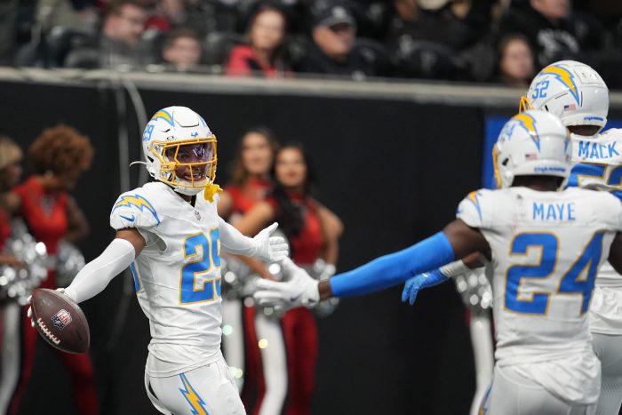 Still read the play all the way, stepping in front of Darnell Mooney and sprinting untouched down the sideline in front of the Falcons’ bench for the touchdown that put the Chargers ahead to stay.