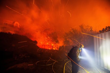 MALIBU, California (Reuters) -Aided by favorable winds and weather, firefighters on Wednesday progressed in containing a wildfire in the beach community of Malibu, California, where 6,300 people evacuated their homes as schools and businesses shut their doors.