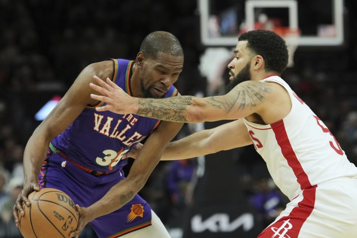 PHOENIX (AP) — Phoenix Suns All-Star Kevin Durant was helped to the locker room with 6:57 left in the third quarter against Houston on Sunday night after falling to the floor in a collision with the Rockets’ Jabari Smith Jr. Smith was called for a foul under the Phoenix basket as Durant fell to the […]
