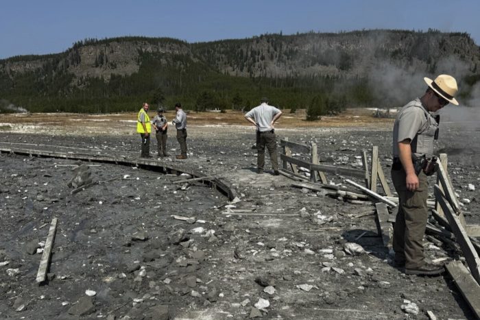 No injuries were reported, but the Biscuit Basin area was closed for visitor safety. The eruption damaged a boardwalk that keeps people off Yellowstone’s fragile and often dangerous geothermal areas.