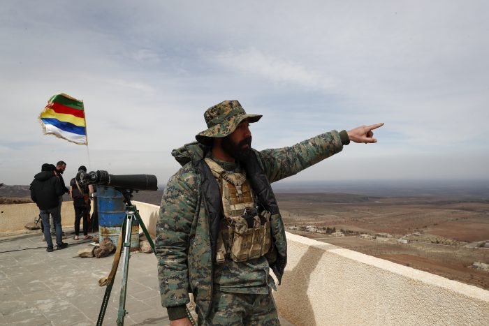 “Our arms are not for expansionist purposes. They’re for self-defense and protection,” said the commander, who asked to be identified only by his nickname Abu Ali for security reasons. “We have no enemies except those who attack us.”