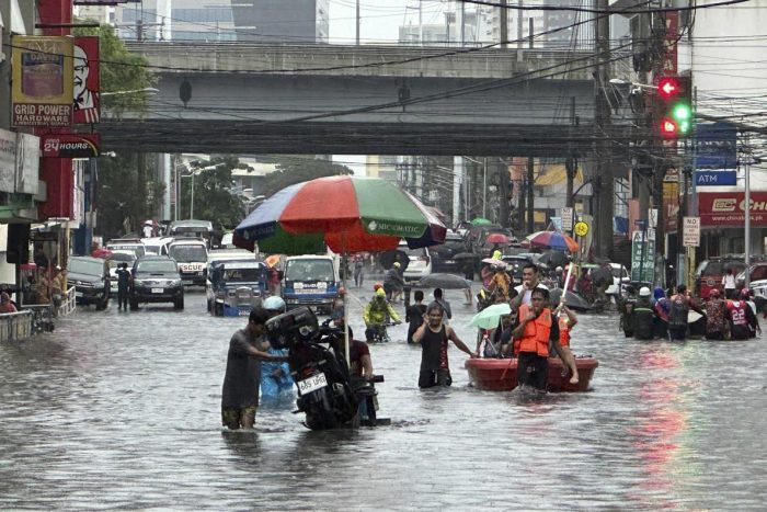 A spokesperson for the Philippine coast guard, Rear Admiral Armando Balilo, said they have been overwhelmed with pleas from residents in the capital to be rescued. Some waited on rooftops.