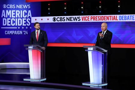 (Reuters) -U.S. Senator JD Vance, Republican Donald Trump’s pick as his vice presidential running mate, squared off against Minnesota Governor Tim Walz, who Democrat Kamala Harris tapped to be her No. 2, in a nationally televised debate on Tuesday.