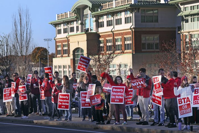 The Beverly Teachers Association in a statement said they were pushing for smaller class sizes in the 4,500-student district, 12 weeks of paid parental leave and a “living wage” for paraprofessionals or teachers assistant whose starting salary is $20,000.