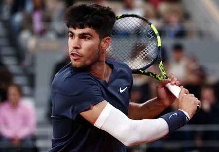 PARIS (Reuters) -Spain’s Carlos Alcaraz reached the French Open third round but suffered a worrying loss of form midway through his match against Dutch qualifier Jesper de Jong before winning 6-3 6-4 2-6 6-2 on Wednesday.
