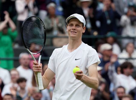 LONDON (Reuters) – Defending champion Carlos Alcaraz and world number one Jannik Sinner stayed on track for a blockbuster Wimbledon showdown by reaching the quarter-finals, while women’s second seed Coco Gauff was sent tumbling out on a soggy Sunday.