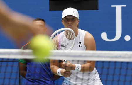 NEW YORK (Reuters) – Iga Swiatek made quick work of Japanese qualifier Ena Shibahara in a 6-0 6-1 victory in the second round on Thursday to underline her title credentials at the U.S. Open.