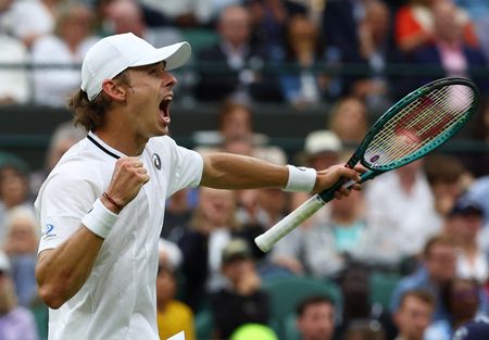 LONDON (Reuters) -Australia’s Alex De Minaur reached the Wimbledon quarter-finals for the first time as he beat rising Frenchman Arthur Fils 6-2 6-4 4-6 6-3 on Monday.