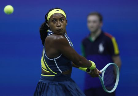 NEW YORK (Reuters) – Defending champion Coco Gauff brought her “nothing to lose” mentality to the second round of the U.S. Open as she cleaned up early mistakes to beat unseeded German Tatjana Maria 6-4 6-0 on Wednesday.