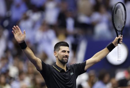 NEW YORK (Reuters) -Novak Djokovic delivered a lesson in Grand Slam tenacity to Learner Tien in the first round of the U.S. Open on Sunday as he battled past the American teenager 6-1 7-6(3) 6-2 and launched his latest quest for a record 25th major title.