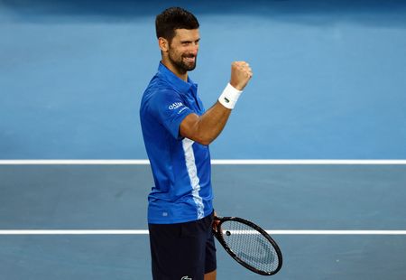 MELBOURNE (Reuters) – Novak Djokovic continued to build into the Australian Open with a 6-1 6-7(4) 6-3 6-2 victory over Portuguese qualifier Jaime Faria in the second round on Wednesday, taking another step towards a 25th Grand Slam title.