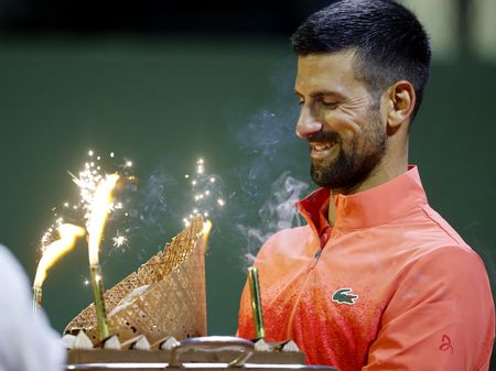 (Reuters) -Novak Djokovic marked his 38th birthday in style on Thursday, defeating Matteo Arnaldi 6-4 6-4 to reach the Geneva Open semi-finals and continue his pursuit of a 100th career title.