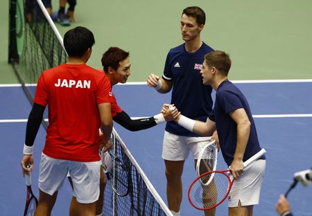 Japan and Britain were tied 1-1 after Friday’s play but the visitors edged ahead as Joe Salisbury and Neal Skupski beat Japanese duo Yosuke Watanuki and Takeru Yuzuki 7-6(4) 7-6(3) in the doubles to move within one victory of the next round.