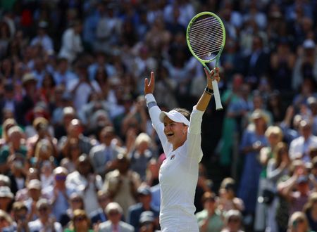 LONDON (Reuters) -Barbora Krejcikova held off Italian crowd favourite Jasmine Paolini to win the Wimbledon singles title on Saturday, coming through 6-2 2-6 6-4 on a sunlit Centre Court.