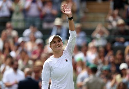 LONDON (Reuters) -Barbora Krejcikova is no stranger to deep runs at Grand Slams but the Czech surprised herself by reaching her first Wimbledon semi-final on Wednesday with a 6-4 7-6(4) win over Latvian 13th seed Jelena Ostapenko in a clash of former French Open winners.