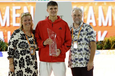 (Reuters) -Jakub Mensik claimed the first title of his career with a 7-6(4) 7-6(4) win over Novak Djokovic in the Miami Open final on Sunday but the Czech teenager revealed he had nearly pulled out of the tournament due to inflammation in his right knee.