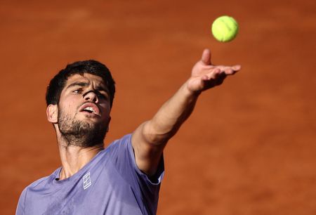 ROME (Reuters) -Carlos Alcaraz had little trouble dismantling Jannik Sinner in the Italian Open final, sealing a 7-6(5) 6-1 victory to snap the world number one’s 26-match winning streak and break the hearts of the home crowd on Sunday.