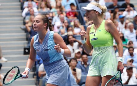 NEW YORK (Reuters) -Latvian Jelena Ostapenko and Ukraine’s Lyudmyla Kichenok won the women’s doubles crown at the U.S. Open with a 6-4 6-3 victory over Chinese-French pairing Zhang Shaui and Kristina Mladenovic on Friday.
