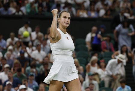 LONDON (Reuters) – Playing against 15,000 opponents is no easy task, but that is what Aryna Sabalenka must have felt she was up against as she faced Britain’s big hope, Emma Raducanu, in a rollicking third round Wimbledon showdown on Friday.