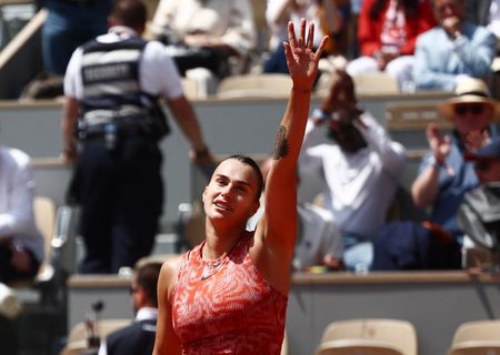PARIS (Reuters) – World number two Aryna Sabalenka pummelled American Emma Navarro 6-2 6-3 in just over an hour on Monday to march into the French Open quarter-finals with an emphatic performance that kept her on course for her first title in Paris.