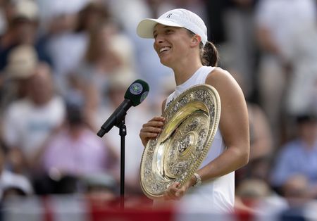 By Shrivathsa Sridhar LONDON (Reuters) -During the Wimbledon fortnight, a grinning Iga Swiatek was often caught on camera cramming dozens of official towels into her tennis bags, creating a running joke that ‘Wimbledon’s towel thief strikes again!’ On Saturday, Wimbledon marked her love of the towels by presenting the new champion with a personalised purple […]