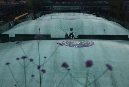 Play on all outside courts at Wimbledon will not begin until at least 1115 GMT due to rain.