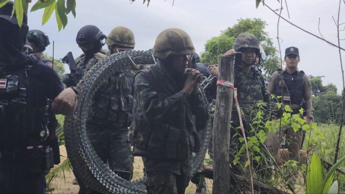 A Thai army statement posted online said approximately 200 people came from the Cambodian side “to protest the Thai side’s actions during the deployment of barriers and concertina wire to enhance security along the Thai-Cambodian border.”