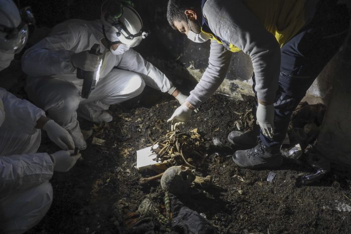 Since Nov. 28, the White Helmets have uncovered “more than 780 bodies, most of unknown identity,” Abed al-Rahman Mawwas, a member of the rescue service, told The Associated Press. He said many were found in shallow graves uncovered by locals or dug up by animals. The bodies are transferred to forensics doctors to determine their identities, time of death and cause of death, as well as to match them with possible family members.