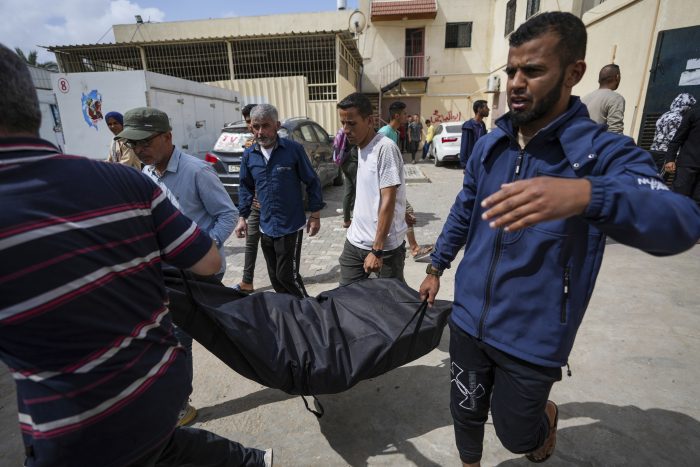 The overnight strikes hit three family homes. The first killed 11 people, including four siblings aged 9 to 27, according to records at the Abu Yousef al-Najjar Hospital, where the bodies were taken. The second strike killed eight people, including a 33-year-old father and his 5-day-old boy, according to hospital records. The third strike killed three siblings, aged 23, 19 and 12. An Associated Press reporter saw the bodies at the hospital.