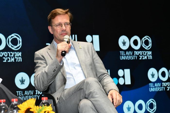 Seibert.jpg – German Ambassador to Israel Steffen Rüdiger Seibert speaks on a panel at the Future of Israel conference, Tel Aviv University, June 19, 2024. (Israel Hadari/Tel Aviv University)