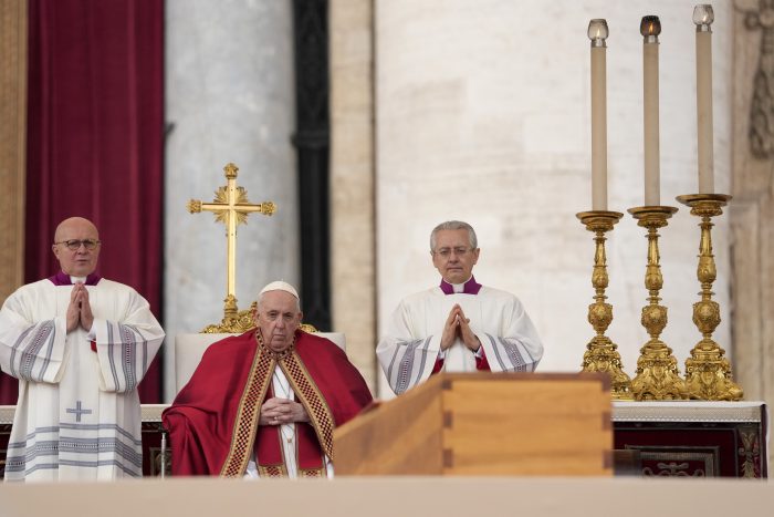 Francis’ reform allows for burial outside the Vatican, with the camerlengo presiding. Various seals are impressed on the coffin, and it is placed inside the tomb.