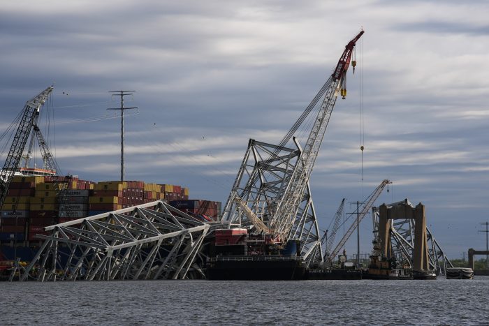 A large span of the steel bridge came crashing down on the Dali’s bow, damaging the ship and destroying some of its containers. Removing those pieces of bridge is the next major priority in the cleanup process, officials said.