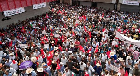 TUNIS -Thousands of members and supporters of Tunisia’s powerful Tunisian General Labour Union (UGTT) protested in the capital on Thursday over what they called a decline in union rights and civic freedoms.
