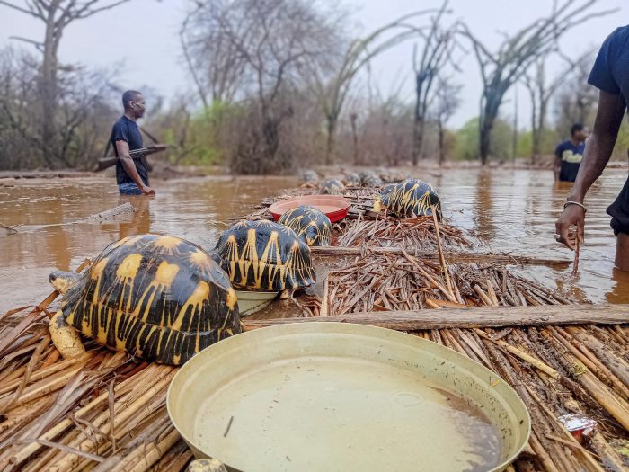 The rescuers had recovered around 700 dead tortoises so far, which Razafimamonjiraibe said were trapped by rocks and debris in the floods.