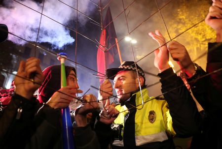 Thousands of student demonstrators have blocked Tbilisi’s central Rustaveli Avenue, facing off against riot police.