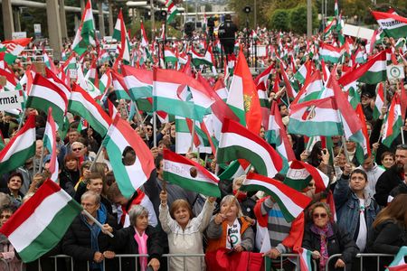 BUDAPEST (Reuters) – Thousands of Hungarians gathered outside the headquarters of the country’s state television on Saturday, protesting against what they described as the government’s “propaganda machine” and calling for an independent public service media.