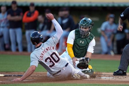 Carpenter, hit for designated hitter Justyn-Henry Malloy in the fifth and singled to right field to score Trey Sweeney, who opened the inning with a walk off left-handed reliever Tim Herrin. With the bases loaded and two outs in the sixth and the Tigers trailing 5-2, Carpenter struck out against Hunter Gaddis.