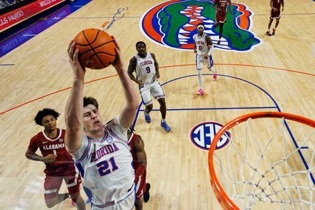 Alabama 7-footer Charles Bediako was limited to six points, seven rebounds and four blocked shots in 24 minutes before fouling out. The former pro is controversially playing because a Tuscaloosa (Ala.) judge recently granted him temporary eligibility; Gators coach Todd Golden recently ripped Alabama’s decision to roster Bediako, capping his statement with, “If he plays, we’ll beat them anyways.”