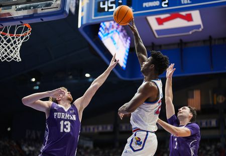The Jayhawks flexed their muscles on the inside, netting 62 points in the paint to just 14 for the Paladins. Kansas also shot 60.9 percent (39-of-64) from the field, while holding Furman to 29.8 percent (17-of-57). Dajuan Harris, who had four assists in the first eight minutes, finished with eight to go with eight points for Kansas (7-0). Hunter Dickinson and Rylan Griffen each had 10 points to lead the Jayhawks.