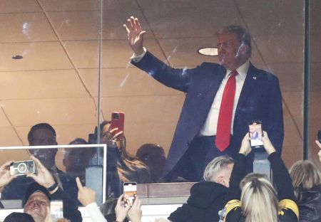 NEW ORLEANS (Reuters) – Greeted with a mix of cheers and boos, U.S. President Donald Trump attended the Super Bowl on Sunday, the first sitting president to do so in person, despite a complicated relationship with the National Football League and a controversial history of mixing politics and sports.