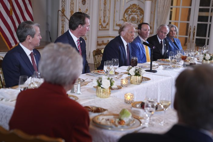 Montana Gov. Greg Gianforte told reporters outside the gathering that some of the GOP governors unable to attend were being inaugurated, and that one was delayed by snow and was unable to make it to Mar-a-Lago in Palm Beach. But he said attendees who could come were “thrilled to accept the president-elect’s invitation” and welcomed a coming “collaborative, working relationship, which we have not had for four years” during the Biden administration.