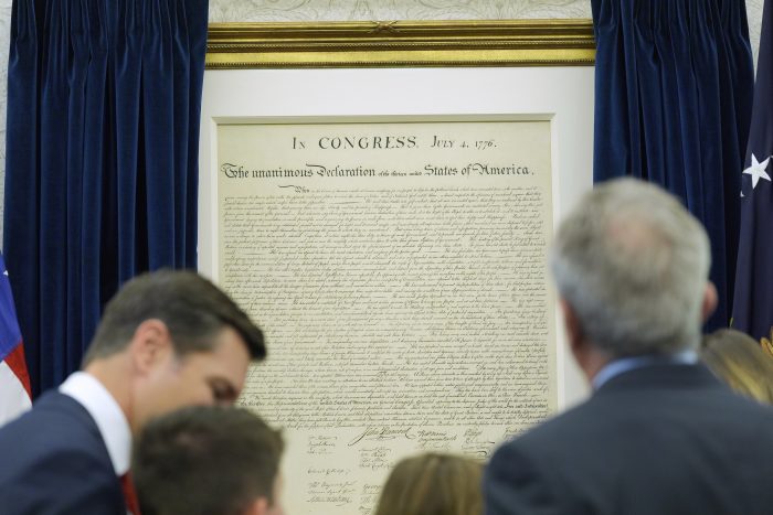 The Republican president recently hung new artworks featuring himself, including a rendering of him with his fist raised after last year’s attempted assassination in Pennsylvania. He has redecorated the Oval Office by adding portraits of all of his predecessors, a wall-mounted copy of the Declaration of Independence that is shielded by dark drapes and many golden accents.