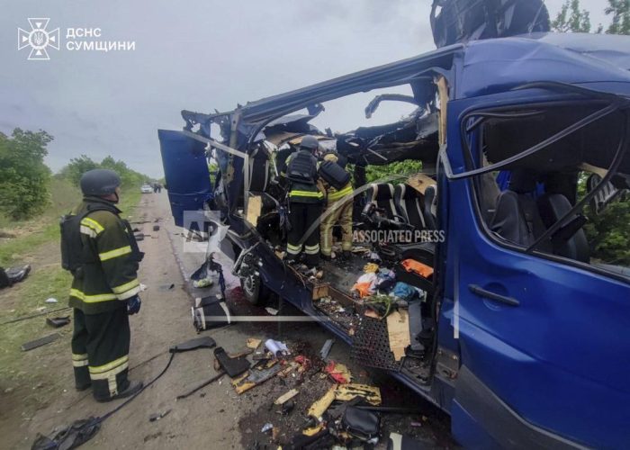 In Ukraine, nine civilians were killed and seven others were wounded when a Russian drone struck a bus evacuating people from Bilopillia, a town around 10 kilometers (6 miles) from Russia’s border, according to local Gov. Oleh Hryhorov and Ukraine’s national police. The Associated Press couldn’t independently verify the reports. There was no immediate comment from Moscow.
