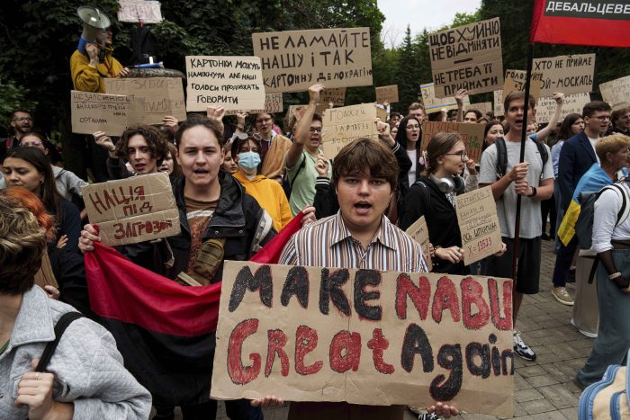Zelenskyy sparked the outcry when he signed measures to reduce the powers of the National Anti-Corruption Bureau, or NABU, and the Specialized Anti-Corruption Prosecutor’s Office, or SAPO.