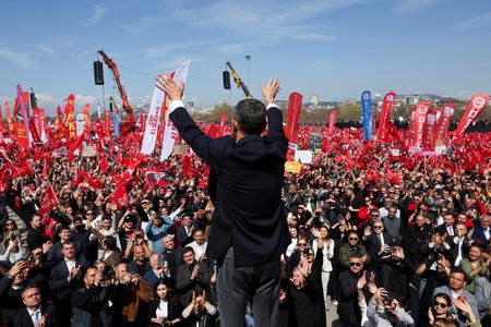 ANKARA (Reuters) – Turkey’s main opposition leader on Sunday pledged further protests against the jailing of Mayor Ekrem Imamoglu, President Tayyip Erdogan’s chief rival, aiming to sustain Turkey’s biggest demonstrations in more than a decade.