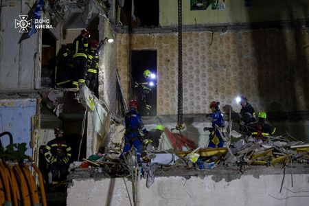 KYIV (Reuters) -Ukrainian rescuers recovered more than a dozen more bodies from the rubble of a collapsed apartment block in Kyiv overnight, bringing the death toll from Russia’s worst air strike of the year on Ukraine’s capital to 31.