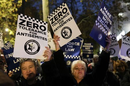 LONDON (Reuters) – Britain saw almost 2,000 antisemitic incidents in the first half of 2024, a record figure for the first six months of any year, a Jewish advisory body said on Thursday.